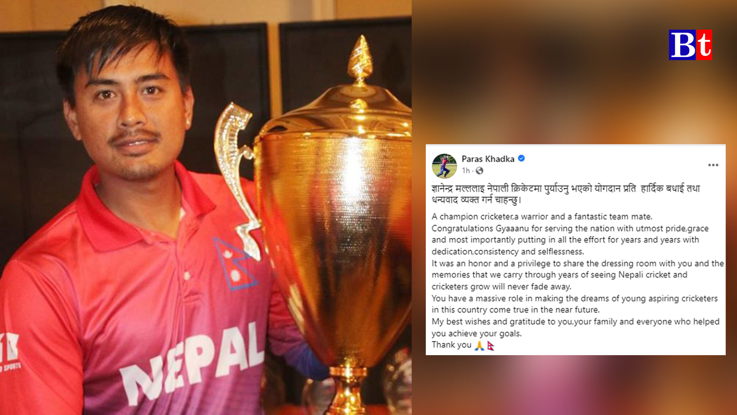 Nepali Cricketer Gyanedra Malla retires, Paras Khadka reacts.